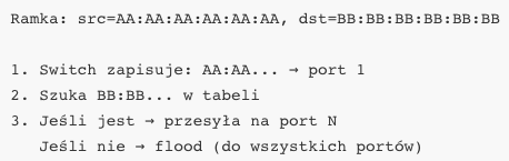 Adres MAC odgrywa kluczową rolę w warstwie łącza danych. Dzięki niemu przełączniki mogą tworzyć tablice MAC, które umożliwiają kierowanie ramek do konkretnego portu. Gdy przełącznik odbierze ramkę, analizuje pole źródłowe MAC i zapamiętuje, z którego portu nadeszła, a następnie przesyła ramkę na port skojarzony z adresem docelowym.