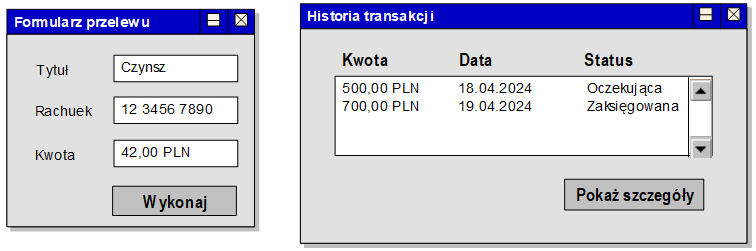 Wybrano dwie sceny przedstawiające dwa przykładowe okna z rozwiązania zadania 4 z rozdziału 10.