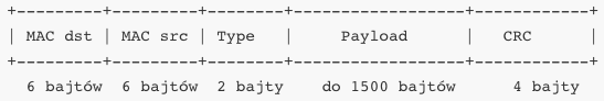 Podstawową jednostką transmisji w Ethernet jest ramka (frame), która zawiera pola adresowe, dane oraz kontrolne. Struktura ramki definiuje sposób działania warstwy MAC oraz sposób identyfikacji nadawcy i odbiorcy. Ramki Ethernetu mają określoną strukturę i ograniczenia długości. Minimalna długość ramki to 64 bajty (aby umożliwić detekcję kolizji), a maksymalna – 1518 bajtów (standardowa) lub do 9216 bajtów (jumbo frames w niektórych implementacjach).