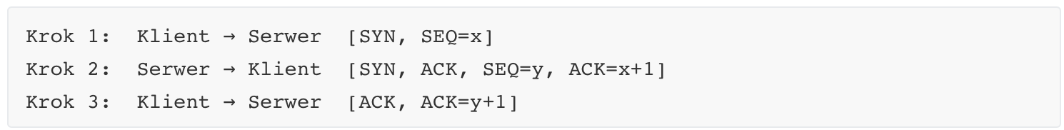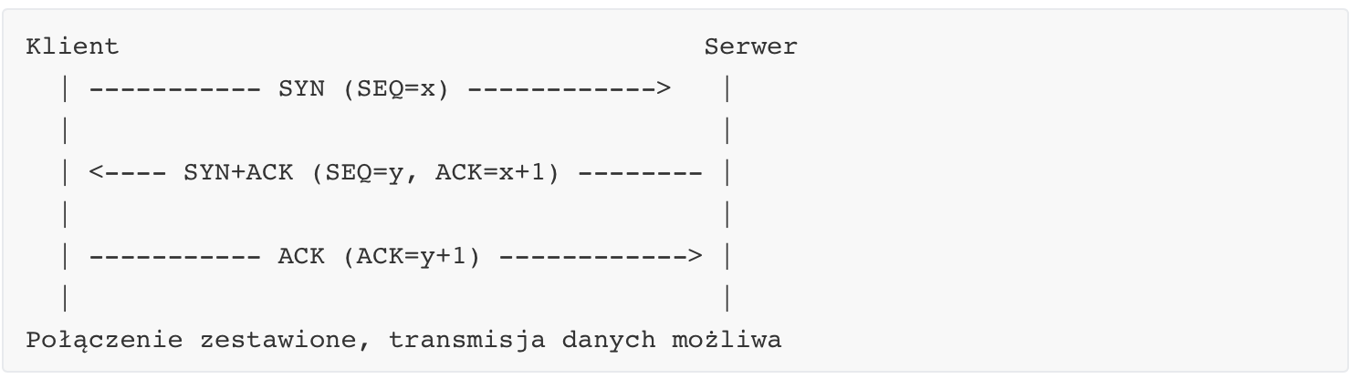 Aby rozpocząć komunikację, TCP używa procesu three-way handshake, który obejmuje trzy kroki: