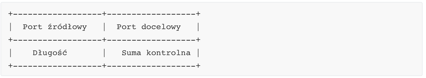 Port źródłowy i docelowy: identyfikują aplikacje końcowe (np. port 80 dla HTTP, port 443 dla HTTPS).