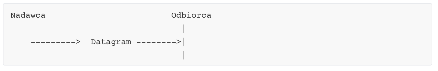 UDP, w odróżnieniu od TCP, działa w trybie bezpołączeniowym i bezstanowym. Nie wymaga uprzedniego zestawienia połączenia ani nie utrzymuje informacji o stanie komunikacji. Datagramy UDP są wysyłane natychmiast, bez gwarancji dostarczenia, bez potwierdzeń i bez retransmisji. To znacząco zmniejsza narzut czasowy i systemowy, umożliwiając szybką transmisję danych w czasie rzeczywistym, ale kosztem braku niezawodności. Odpowiedzialność za ewentualną naprawę błędów lub potwierdzenia spoczywa na aplikacji.