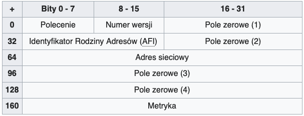 Numer wersji Określa, której wersji protokołu RIP dotyczy komunikat – możliwe wartości to 1 (RIPv1) lub 2 (RIPv2).