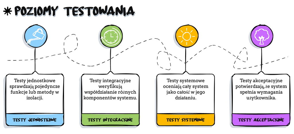 W procesie tworzenia oprogramowania testowanie nie jest jednolitym zadaniem, lecz składa się z wielu warstw, każda z nich odpowiada za różne aspekty i etapy weryfikacji produktu. Niniejszy rozdział przedstawia szczegółowy przegląd czterech głównych poziomów testowania, które są niezbędne do zapewnienia jakości i efektywności współczesnego oprogramowania. Te poziomy obejmują: