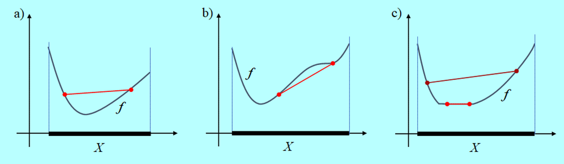 - \((∀0<α<1) (∀x^0,x^1∈X)f(αx^0+(1-α)x^1)≤αf(x^0)+(1-α)f(x^1).\)