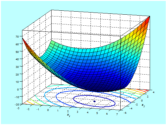 \((x1, x2) ↦ f (x1, x2) = 100(x2 – x1^2)^2 + (1 – x1)^2.\)