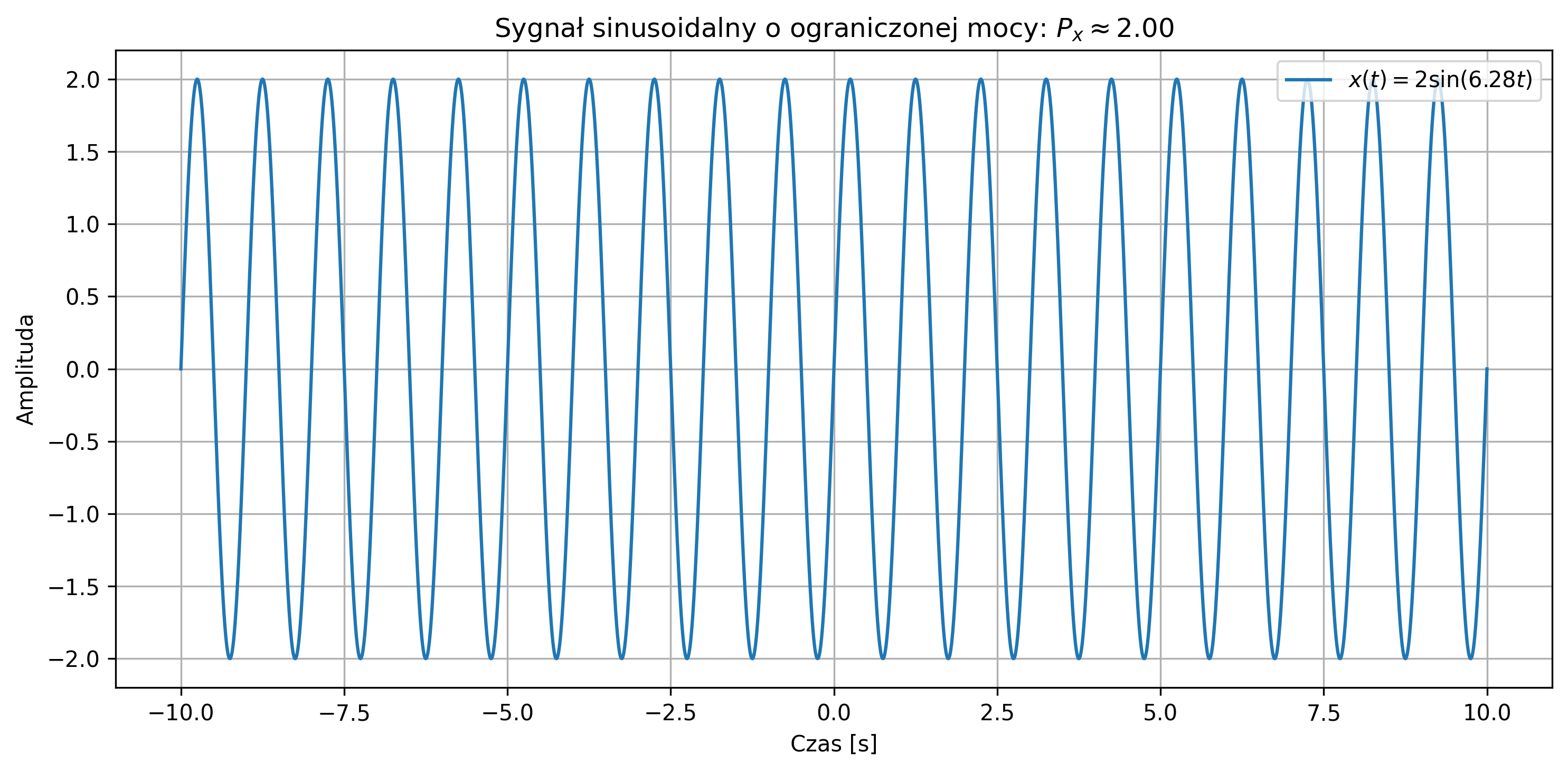 plt.title(fr'Sygnał sinusoidalny o ograniczonej mocy: $P_x \approx {power:.2f}$')
