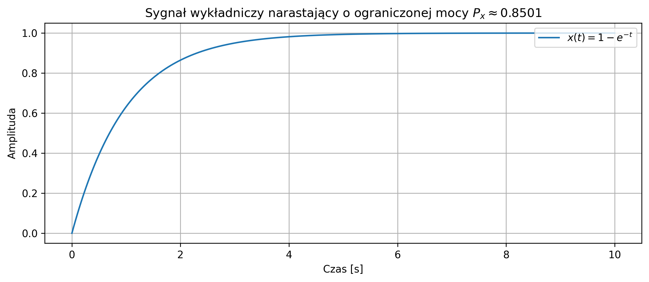 Przyjąć częstotliwość nośną \(50\) Hz i częstotliwość modulacji \(5\) Hz. Obliczyć moc i energię sygnału.