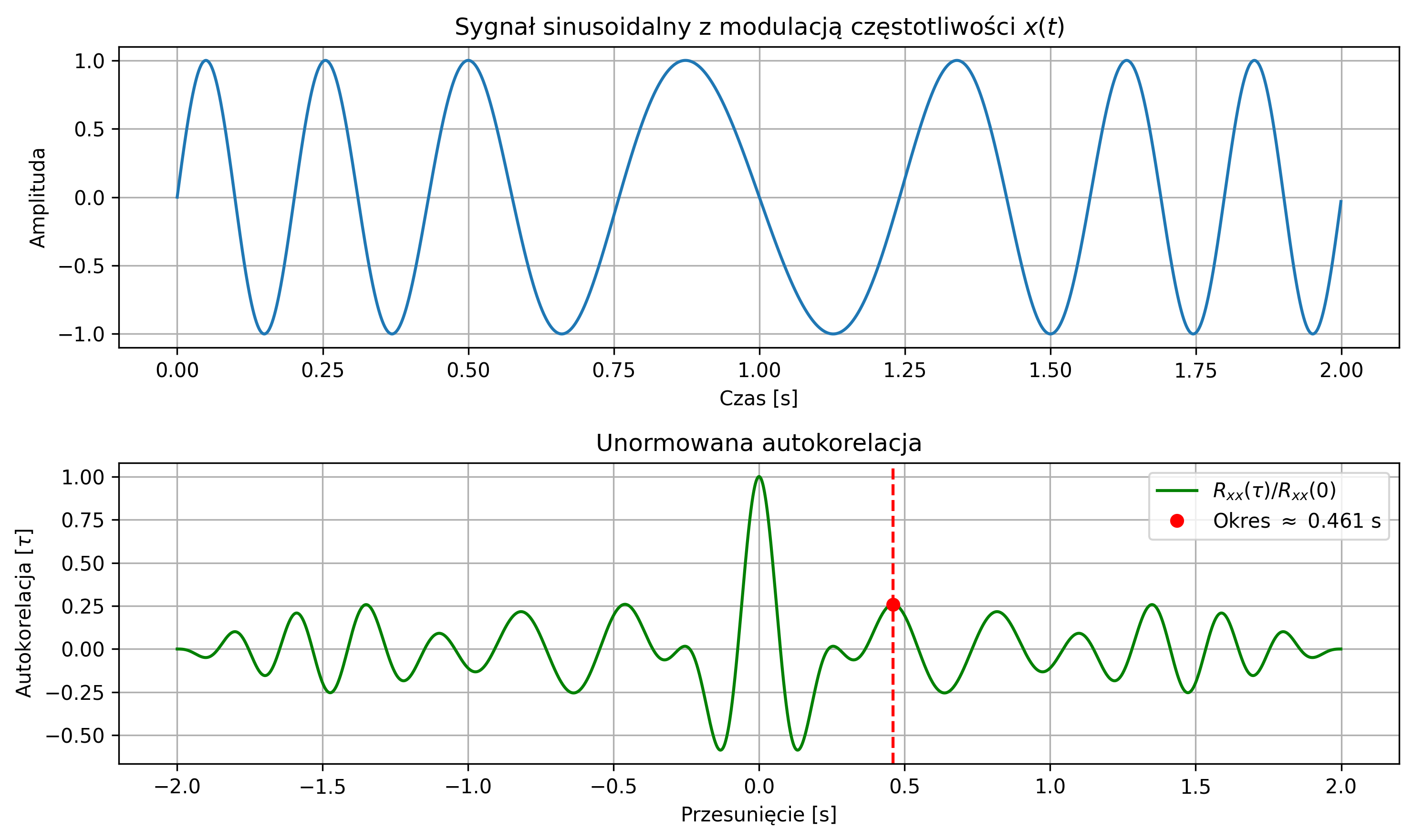 # Sygnał pseudookresowy: sinus z modulacją częstotliwości