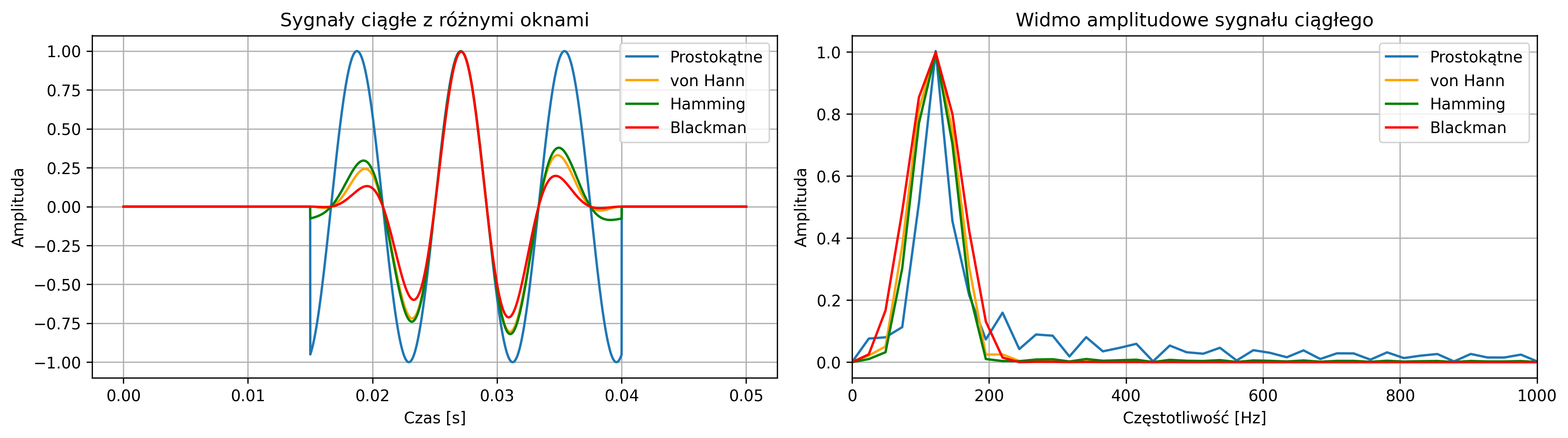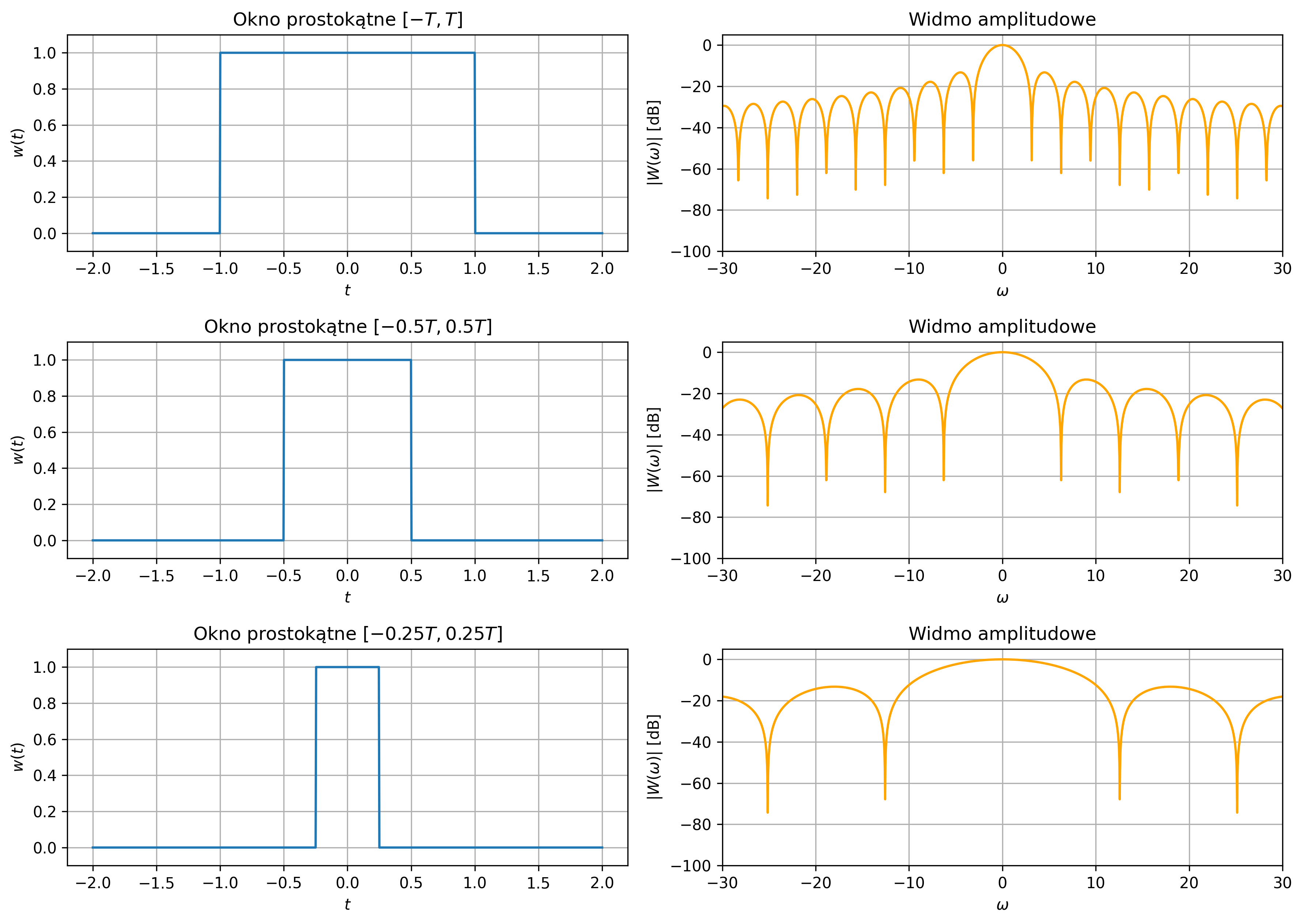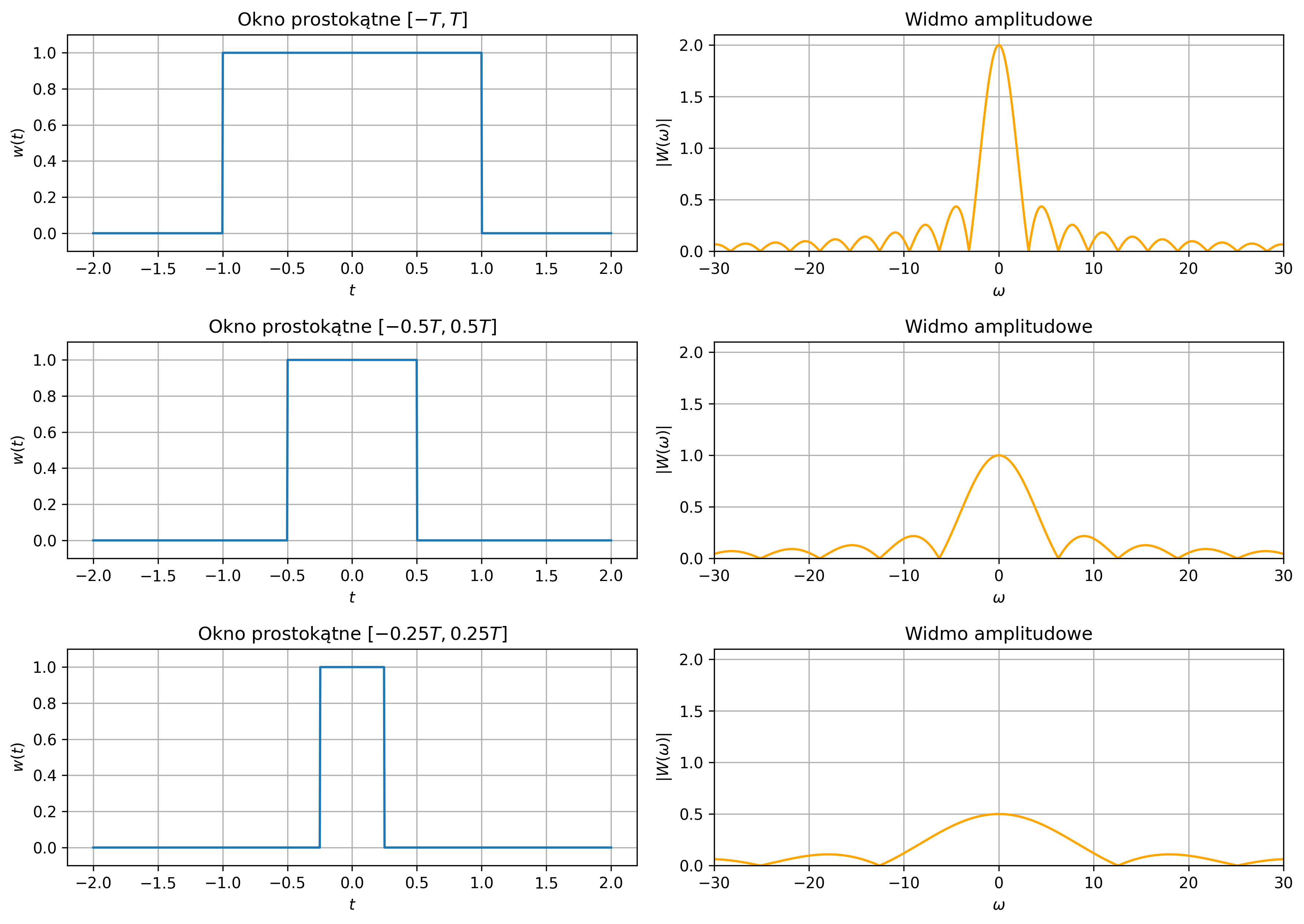 gdzie \( w(t) \) jest funkcją okna czasowego, zwykle prostokątnego, przyjmującą wartość \(1\) w przedziale \([t_0, t_0 + T]\) i \(0\) poza nim. Ma to bezpośredni wpływ na wynikową transformatę Fouriera, ponieważ zgodnie z właściwością iloczynu: