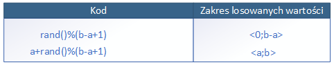Wzór umożliwia wylosowanie liczby całkowitej (int) z przedziału <a;b>.