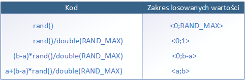 Za pomocą wyprowadzonego wzoru możemy losować liczbę rzeczywistą (double) z przedziału <a;b>. Korzystając z właściwości działania modulo możemy w analogiczny sposób wyprowadzić wzór na losowanie liczb całkowitych.