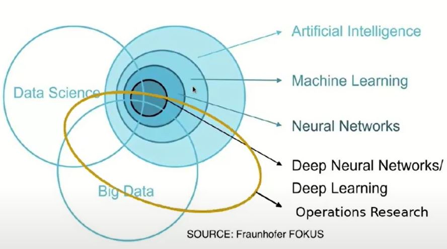 Jak widać badania operacyjne są tu zlokalizowane na wskroś poszczególnych obszarów sztucznej inteligencji, Bid Data i Data Science.