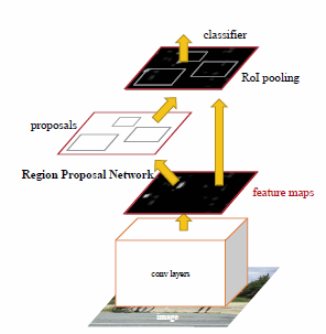 Rozwiązanie bazuje na zastosowaniu dwu podstruktur CNN. Pierwsza z nich, tzw. Region Proposal Network (RPN) jest odpowiedzialna za generację cech diagnostycznych i znajduje rejony obrazu zawierające propozycję ewentualnych obszarów obiektów, które w drugiej części rozwiązania sieciowego zwanej RoI pooling (RoI - region of interest) podlegają weryfikacji, stwierdzającej rzeczywiste istnienie bądź negację określonego obiektu (detekcję). Obie części sieci wykorzystują strukturę wielowarstwową CNN i współpracują ze sobą, zarówno w trybie uczenia jak i testowania.