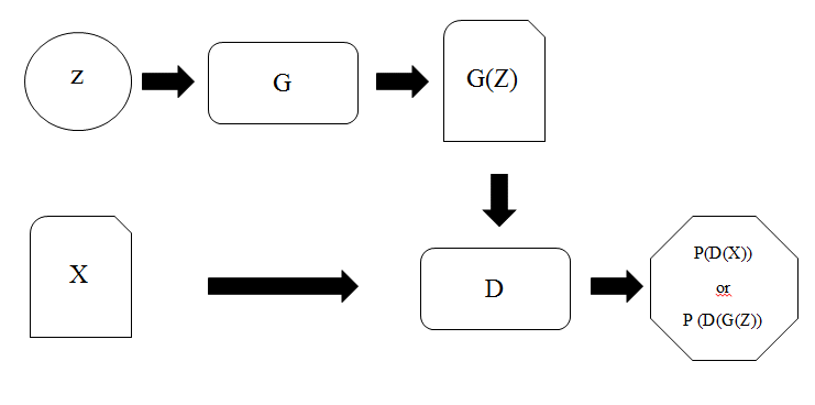Sieć generatywna GAN (Generative Adversarial Network- GAN) stworzona przez zespół Iana Goodfellow w 2014 roku, jest implementacją koncepcji przeciwstawienia sobie dwu sieci neuronowych, z których jedna reprezentuje dane rzeczywiste, a druga dane generowane sztucznie, "udając" dane rzeczywiste [19]. Obie sieci rywalizują ze sobą. System jest trenowany w taki sposób aby generator nowych danych był w stanie oszukać rzeczywistość, prezentując dane (sygnały bądź obrazy) które są trudne do odróżnienia od rzeczywistych. Generator sztucznych danych ma za zadanie wygenerować je w taki sposób, aby statystyki danych oryginalnych i danych generowanych przez niego były takie same. Przykładowo w przypadku obrazów, obraz wygenerowany sztucznie powinien przypominać obraz oryginalny.
