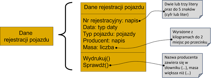 Rysunek 1.2: Klasa w modelu danych a pojęcie w słowniku dziedziny