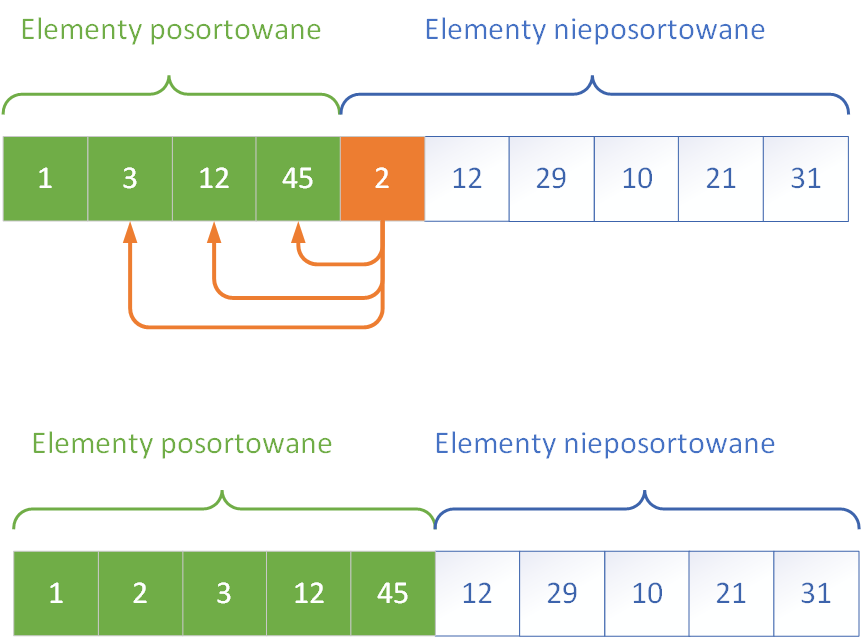 - sortowanie przez wstawianie (ang. InsertionSort),