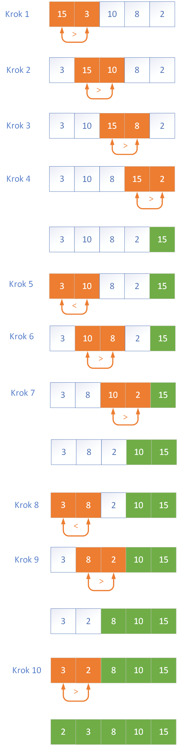 - sortowanie bąbelkowe (ang. BubbleSort).